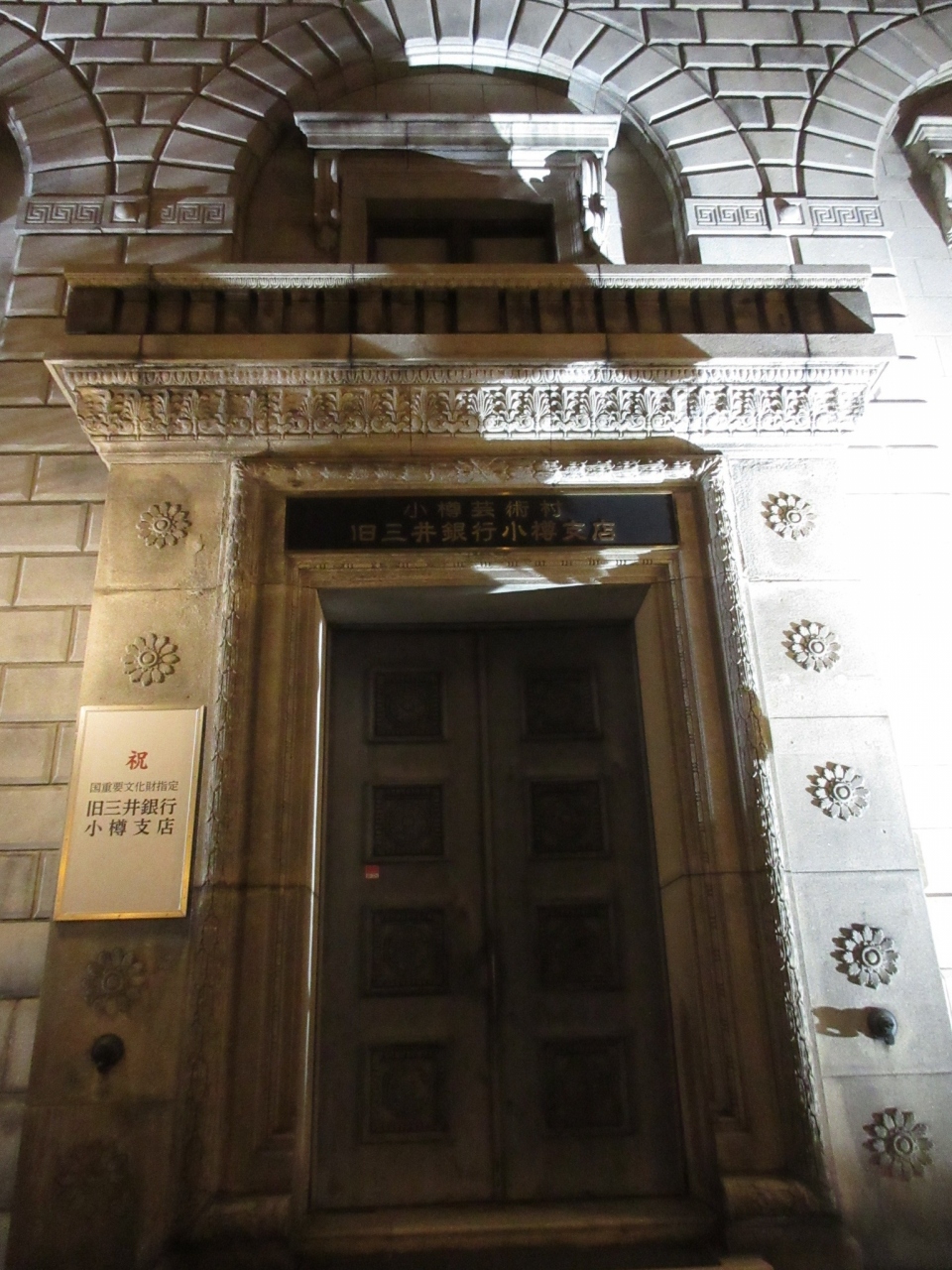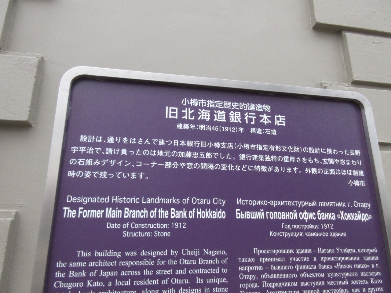 「旧 第一銀行・小樽支店」と同じ設計者のようですが、外観のデザインは大きく異なり、「第一銀行」が重厚で素朴な石造りなのと比べると、こちらは 窓枠、外観に施された紋様など、デザイン性が見られました。