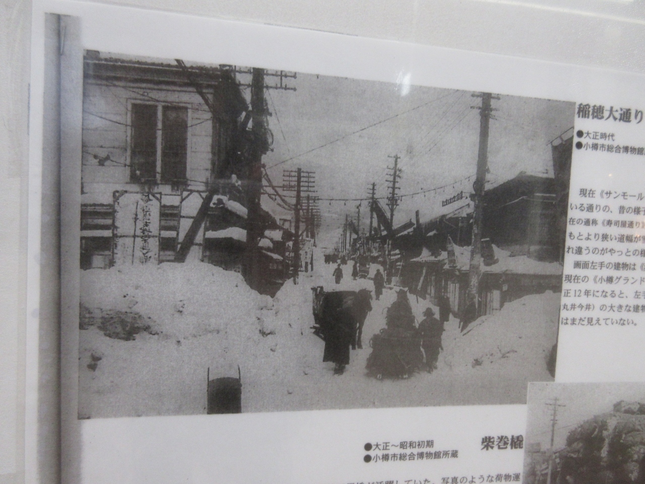商店街の中ほどには、「むかし なつかし写真集」と題した明治・大正・昭和の小樽の写真を展示するスペースや、小樽ゆかりのスーパースター・石原裕次郎の映画ポスターを掲示していました。