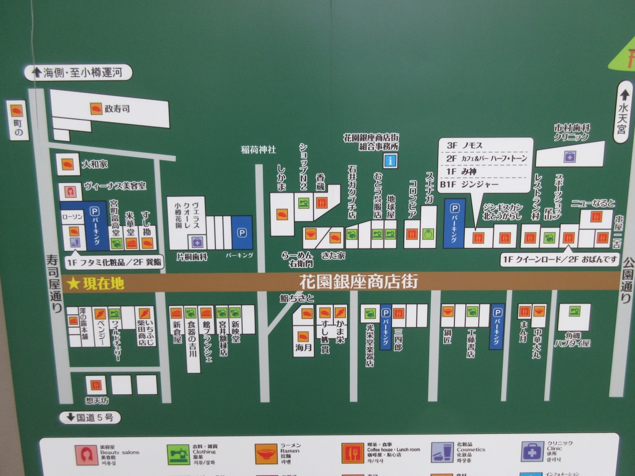 その一つ、花園銀座商店街(通称:花銀)は、サンモール一番街と直結していますが、こちらにはアーケードがなく、雨・雪の日は難儀しそうです。