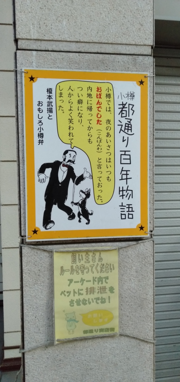 また、小樽の名士なのでしょうか、榎本武揚の「巨大ポスター」や、「榎本武揚おもしろ小樽弁」なる掲示物が随所にありました。