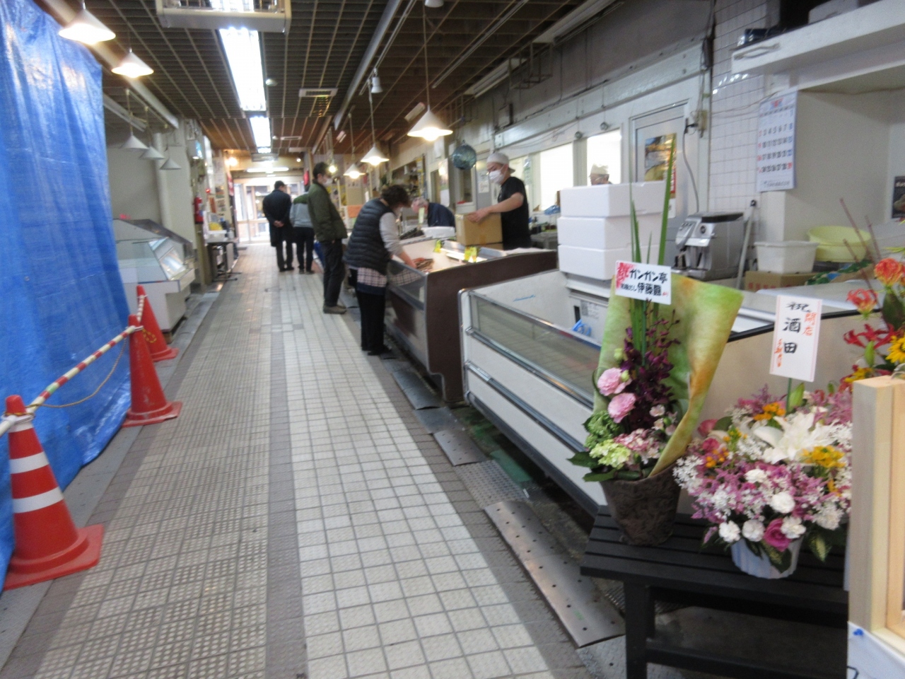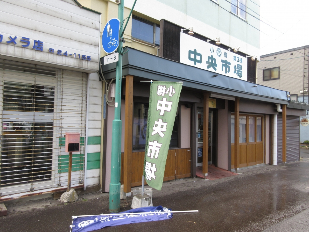 JR小樽駅から徒歩で5~6分、梁川(やながわ)商店街を進んだ先に、「中央市場 第2棟」と「第3棟」が 通りの左右に連なっていました。