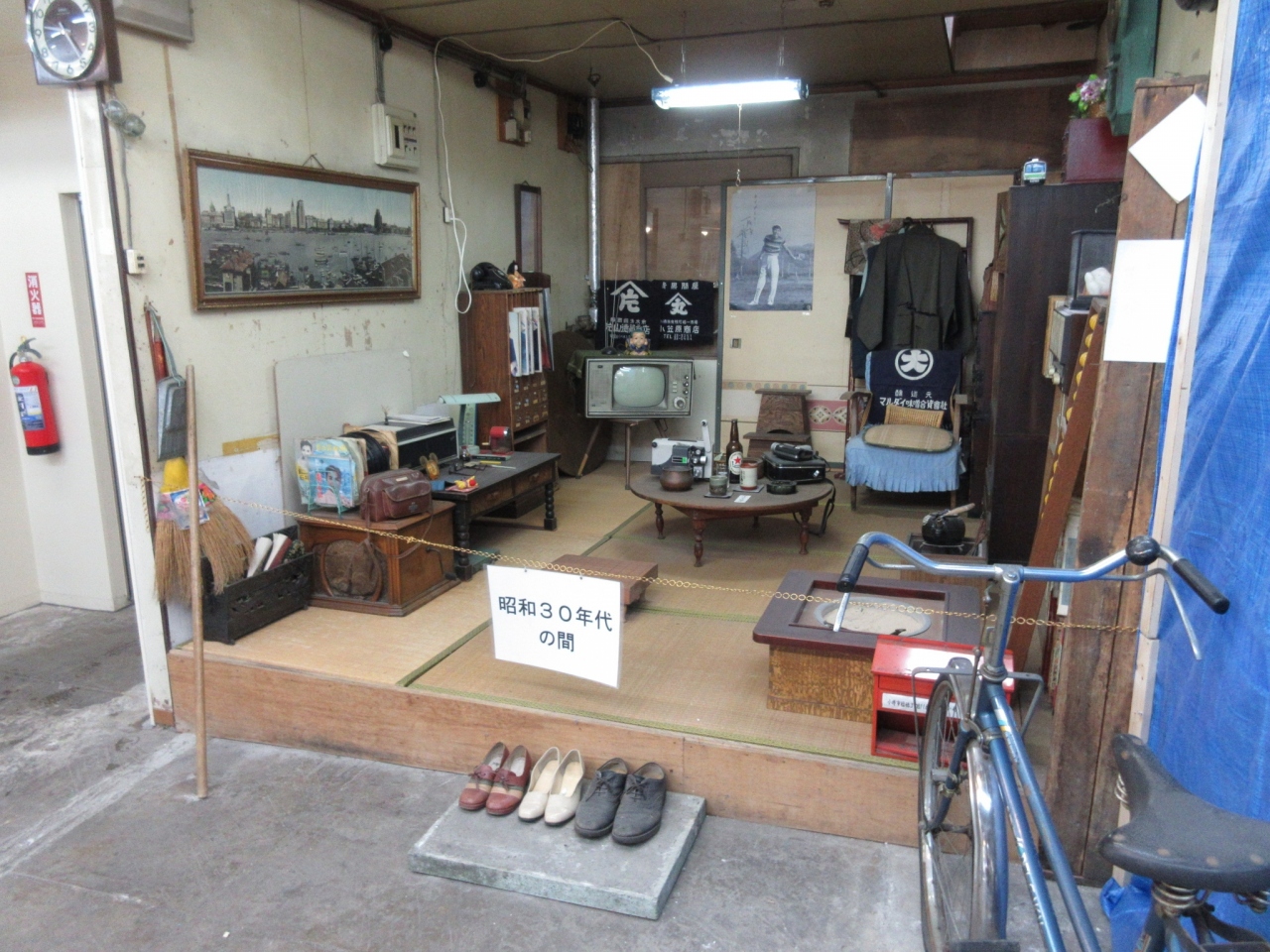 また ちょっとした展示スペースがあり、丸いちゃぶ台や ブラウン管テレビなど、「昭和30年代の間」が再現展示中。