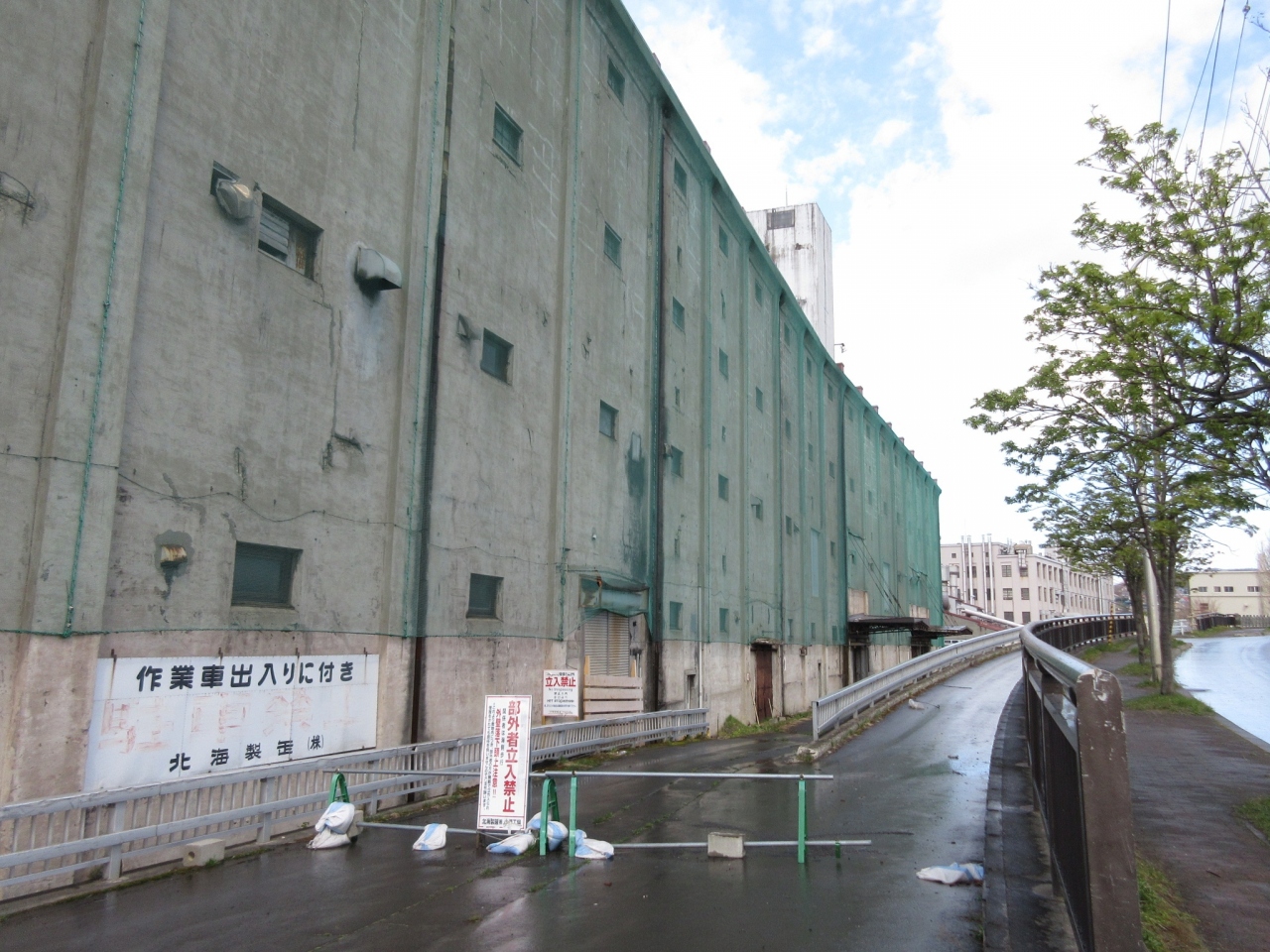 その“端っこのほう”にある橋です。橋を渡ったところには、「旧・北海製罐」の倉庫が建っています。