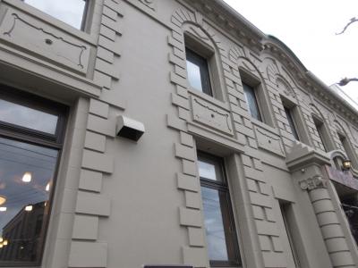 アーチ状の窓枠、軒に施された彫刻など、ルネサンス方式の建物外観は美しさを感じます。