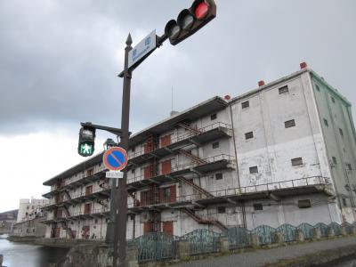 有名観光スポット・小樽運河の一番端っこに建つ 古い巨大な倉庫。