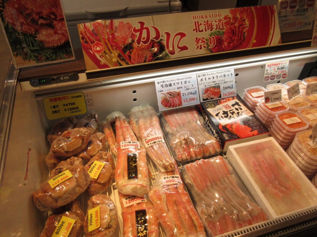 鮭、イクラ、ホタテ、昆布など、北海道産の美味しい水産加工品が勢ぞろい。