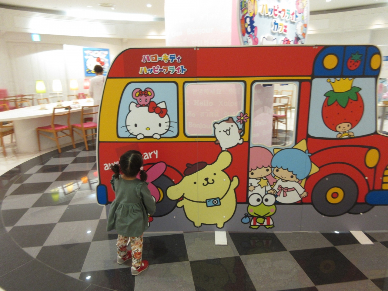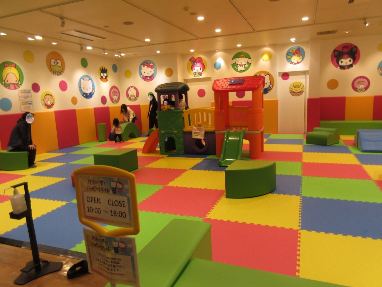 3つの真ん中に位置するハローキティは、やはり小さな女の子に人気のようで、土産物店、フリースペースの遊び場には、親子連れの女児が目立ちました。