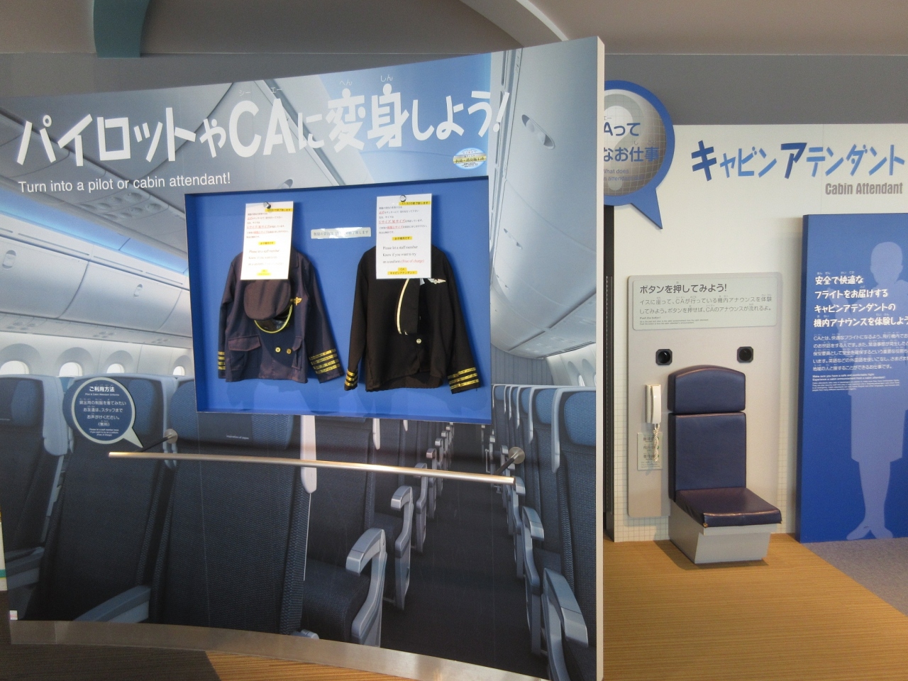 様々な折り方の「紙飛行機」や「ダ・ヴィンチの航空機・原案模型」「航空機・スペースシャトルの模型」などを展示しているほか、パイロット・CAの制服試着コーナー、CA体験コーナーなどを、実際の滑走路を見ながら見学・体験することができます。