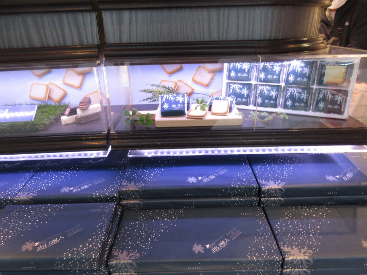 「スノーショップ」という名前の通り、「雪印」の製品に特化した店のようで、看板商品である「白い恋人」を前面に出して販売していました。