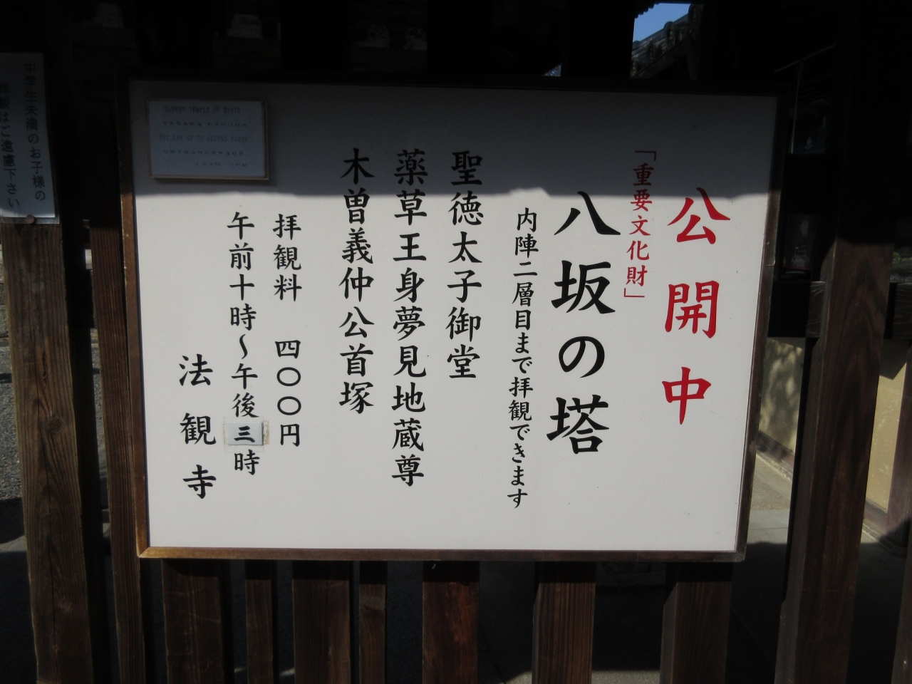 京都観光の際には、一度は目にする施設かと思いますが、この塔があるのが、かの聖徳太子が建立したという「法観禅寺」というお寺になります。