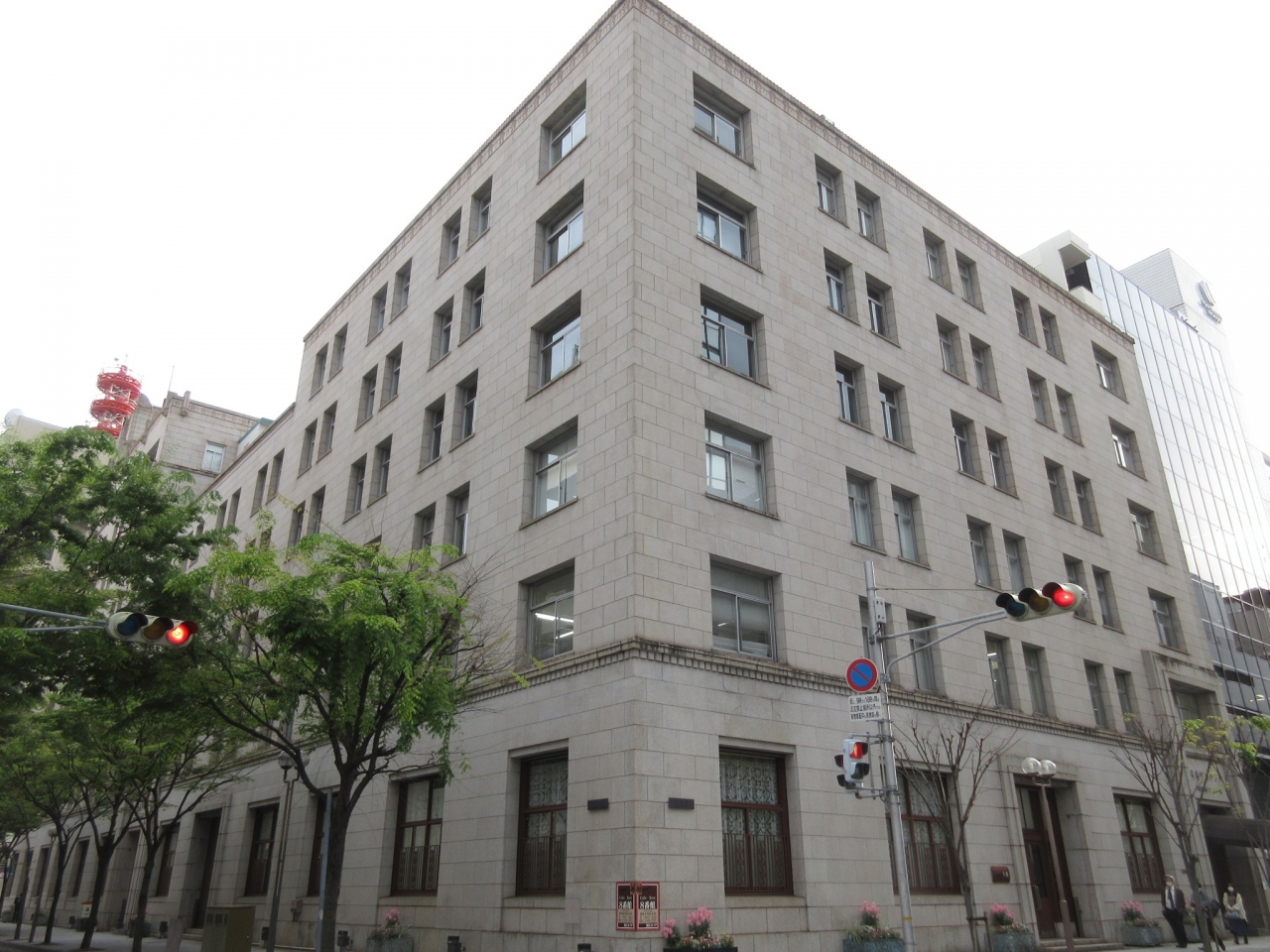 「十五番館」の建物がキレイなので、標柱には目が行かないかもしれませんが、真横にありますよ。- 旅行時期
