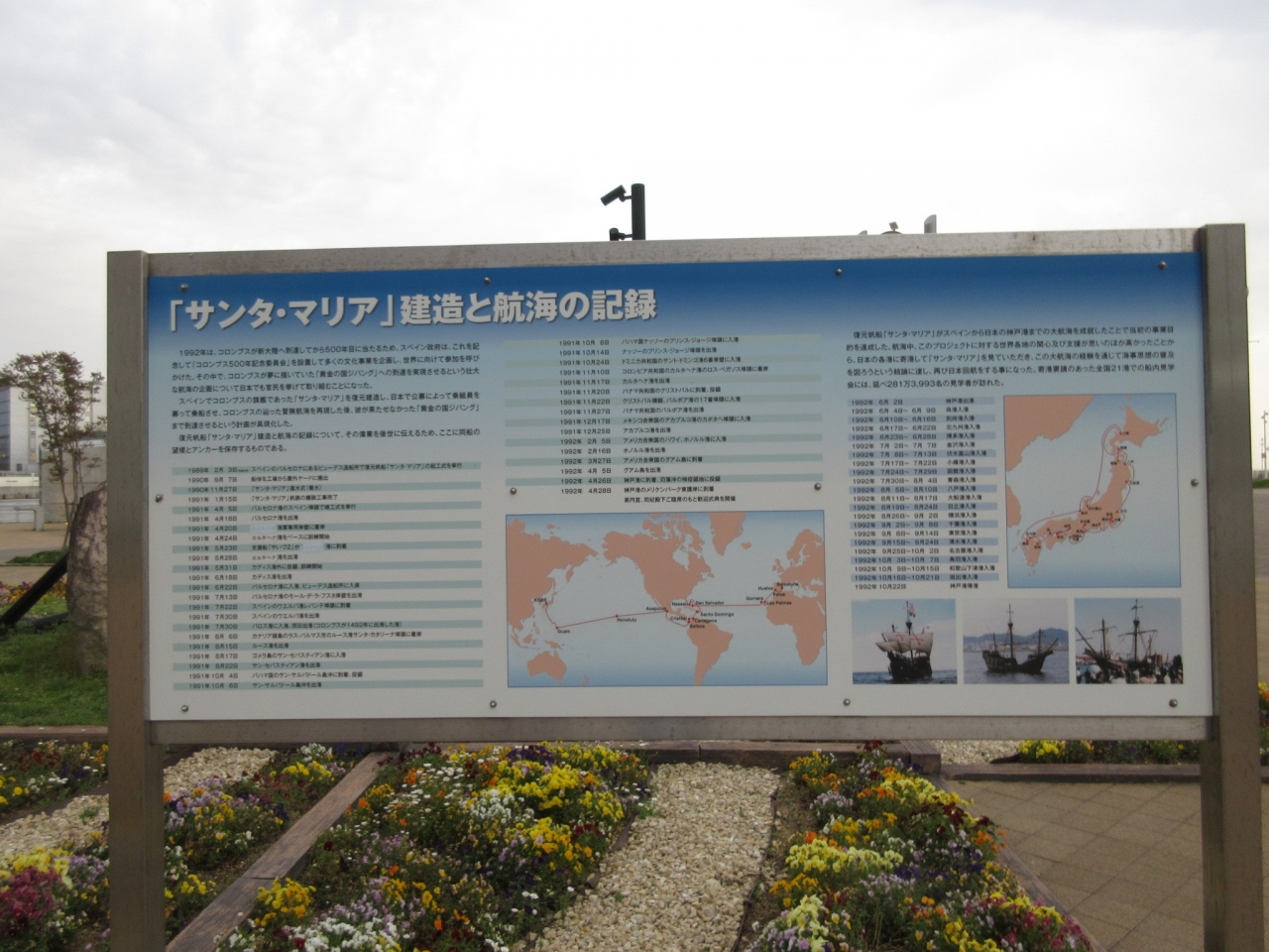 スペインのコロンブス船長が率いる「サンタ・マリア号」は、日本に来たことはありませんが、彼が夢見た「黄金の国・ジパング」への「到達を実現」させるため、官民で誘致した「復元帆船・サンタマリア号」の部品の一部を、この地に設置したんだとか。