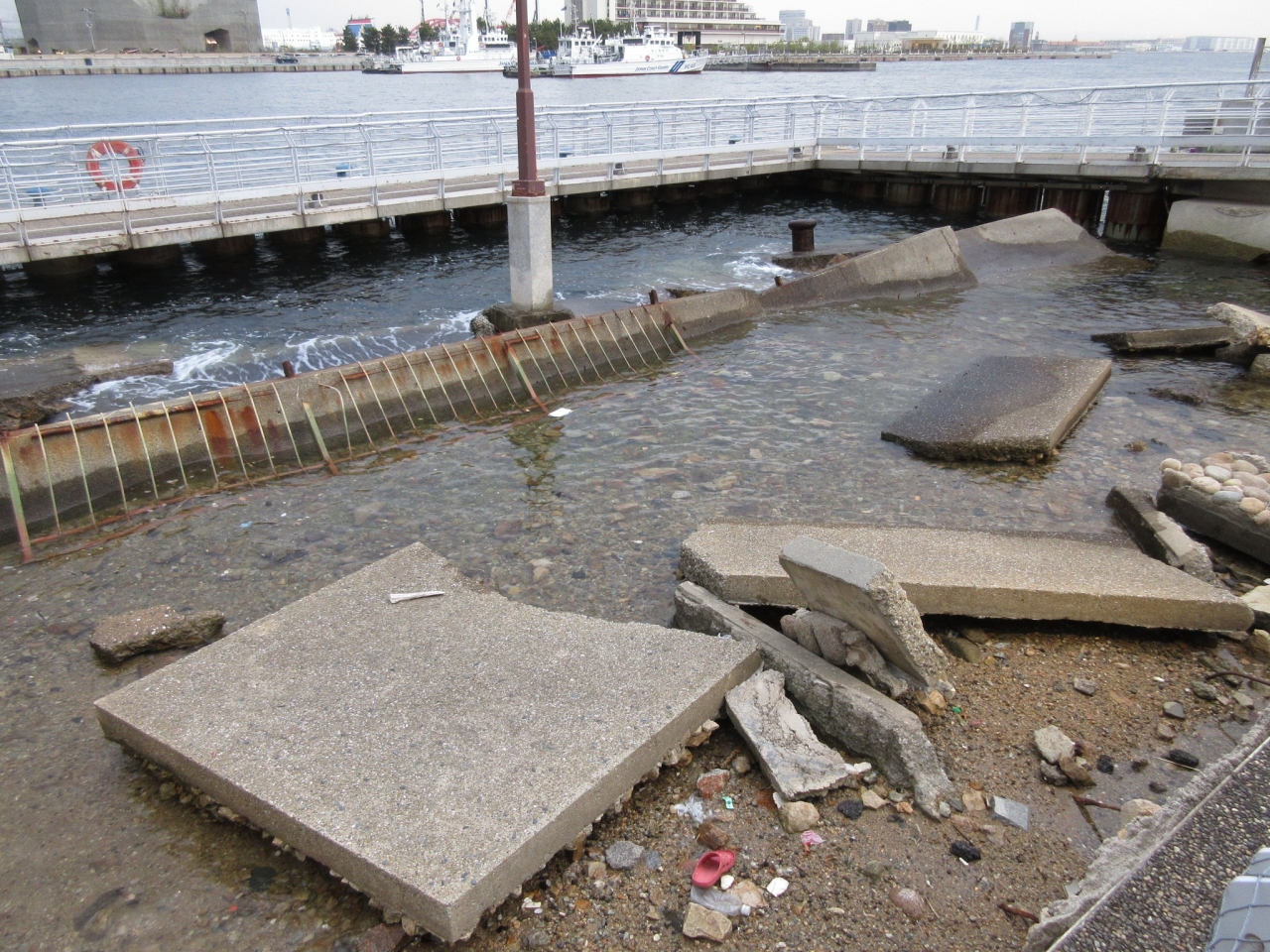 その震災の怖さ、恐ろしい地震の威力を 今に伝える「震災遺構」として、港町・神戸のメリケンパークの一部を「当時の崩れたまま」の状態で残されたものです。