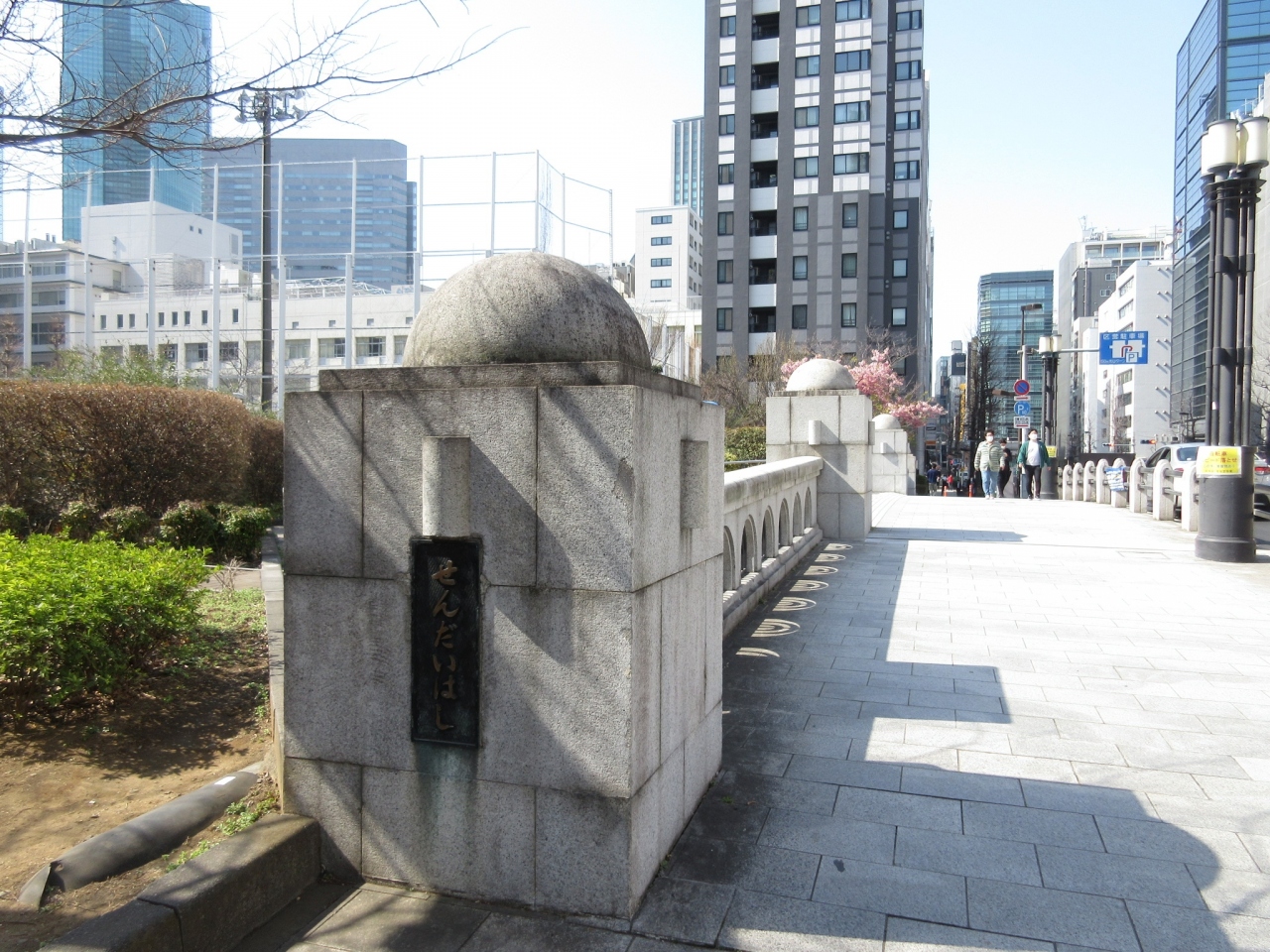 新橋・汐留方面から築地の場外市場へと向かう途中、この「せんだい橋」の手前に小さな公園がありました。