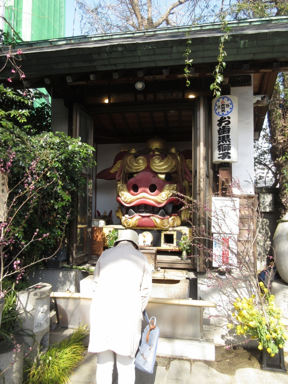 驚くのは 境内に入って すぐ目に入る「巨大な獅子頭」