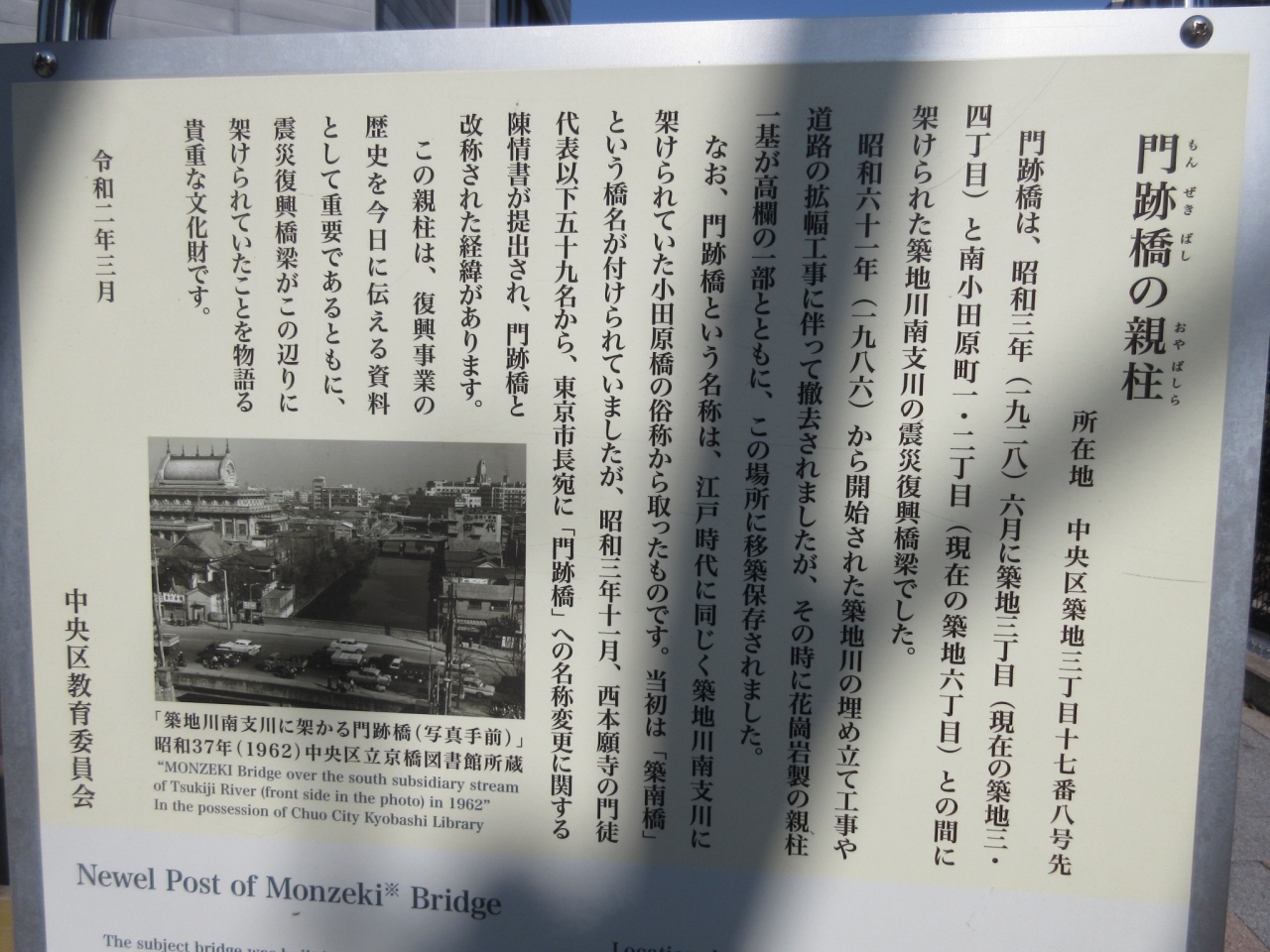 その通り沿いの「築地場外市場」すぐ近くに、説明が書かれた看板が立っていました。