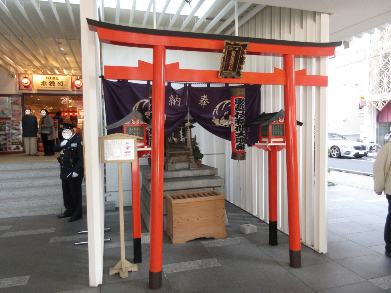 その正面・右手の角の広場に、「歌舞伎見物」に来たと思われる学生の一団が集まっていましたが、そんな彼ら 彼女らが「全く見向きしていなかった」のが、真横に鎮座されている「歌舞伎稲荷神社」