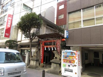 歌舞伎座「木挽町」近くのオフィス街にある ビルとビルの間に挟まれた小さな神社なんですが、街の雰囲気に「溶け込まない」独特の存在感がありました。