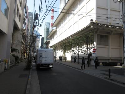 歌舞伎座に沿った裏道は、4号線とは比較にならないほど静かで、業者の配送車と、タクシーが通る程度の交通量。