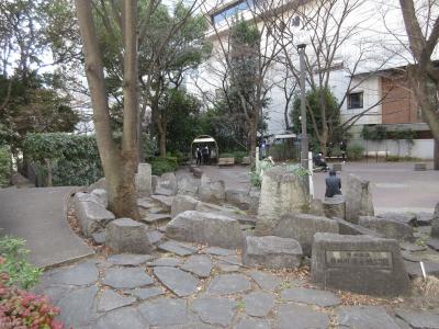 四角錐の形をした「間知石」と、板状に加工された「切り石」は、大名屋敷の排水施設に使われたという 説明書きがありましたが、昭和通りを挟んだ 斜め向かい側には、独眼竜で知られる 戦国武将「伊達政宗」の「仙台藩 伊達屋敷」があったようなので、その一部なのかもしれませんね。- 旅行時期