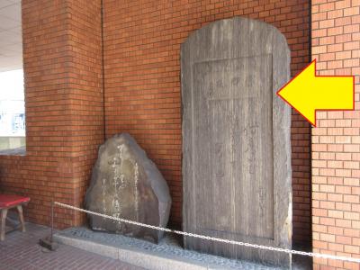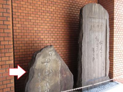 「歌舞伎座」から「新橋演舞場」方面へ移動している途中、植え込みの中に「埋もれている」記念碑を見つけました。