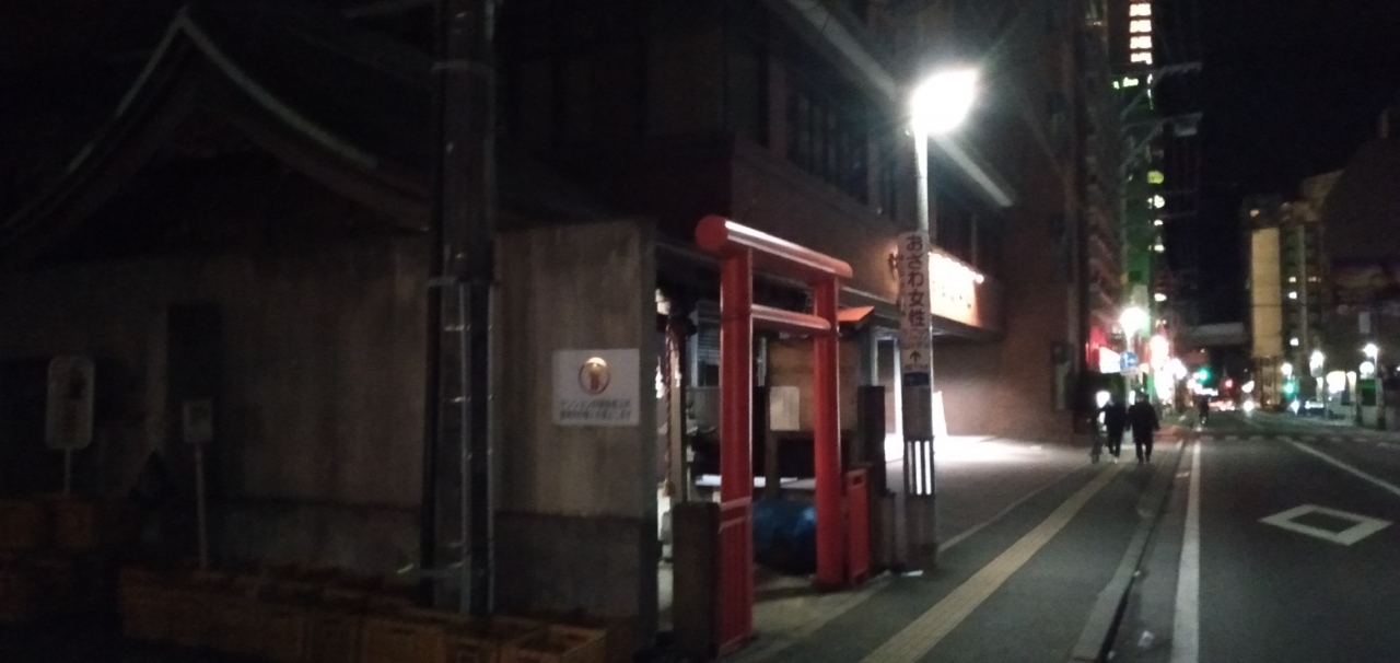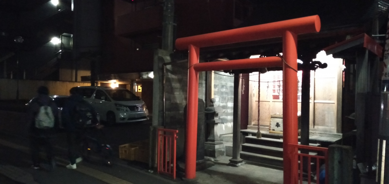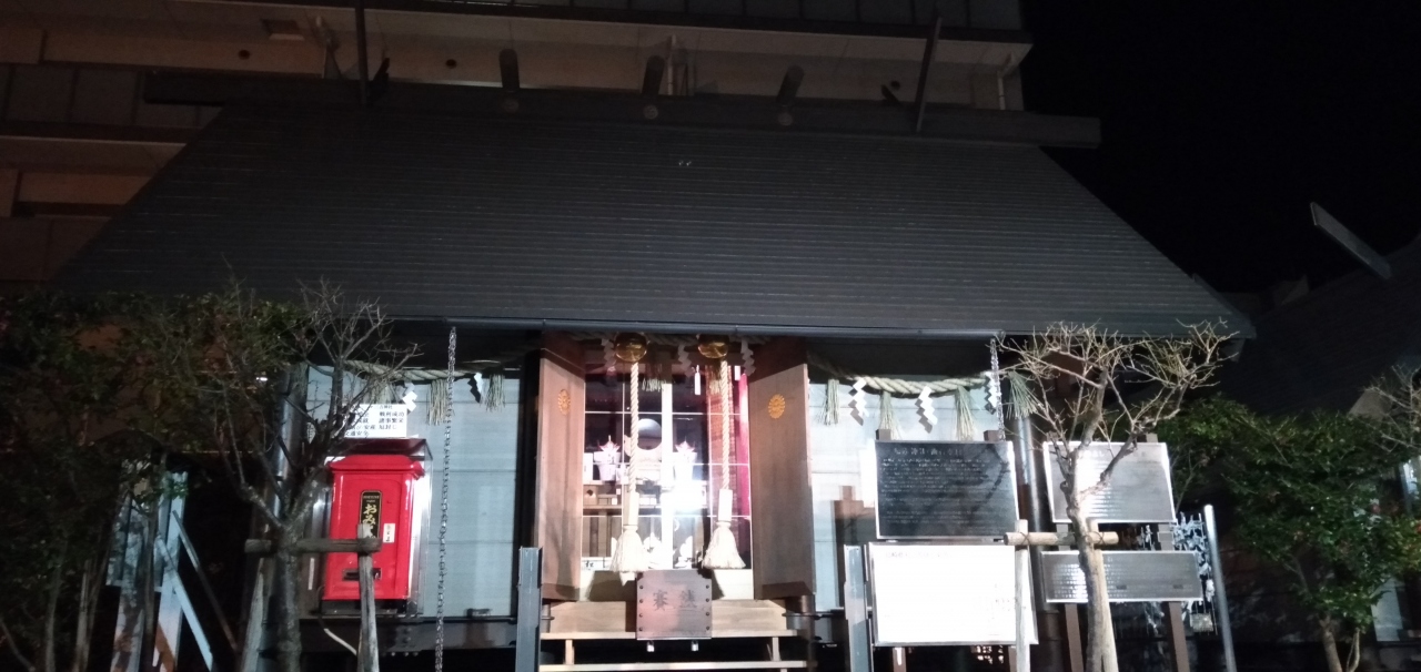 その鳥居の奥にある、小さな 小さな社殿には「煌々と灯りが照らされて」いたので、夜間の参拝でしたが「神様に迷惑のない範囲で」サッと済ませてきました。
