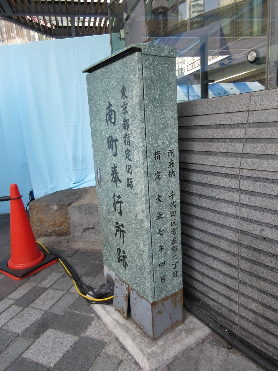 JR山手線・有楽町駅の中央改札口を出て 目の前にある「イトシア」や「交通会館」へ向かう途中の歩道上に、小さな記念碑が建っているのを見つけました。