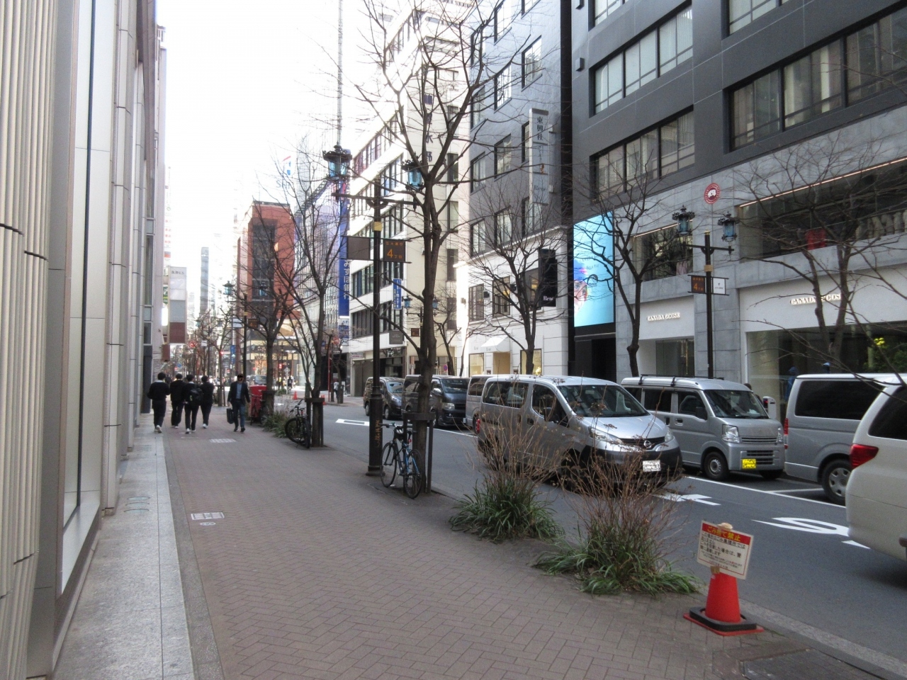 銀座の ど真ん中を貫く道なんですが、大通りからはちょっと内側に入っているので、通行量も少なく、喧騒もあまり感じません。