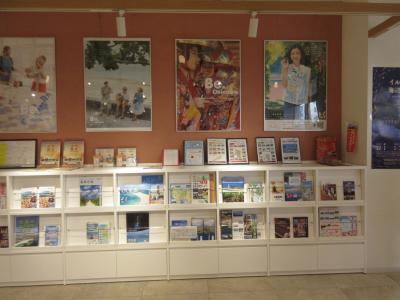 広い施設内には 沖縄県内の観光パンフレットが 潤沢に揃っていて、椅子とテーブルもあるので、ゆっくりと旅の計画を練ることが出来ます。