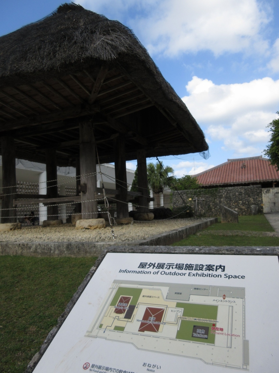 入口から中に入ると まず、琉球時代の「古民家」や「高倉」が屋外展示場に設置されています。