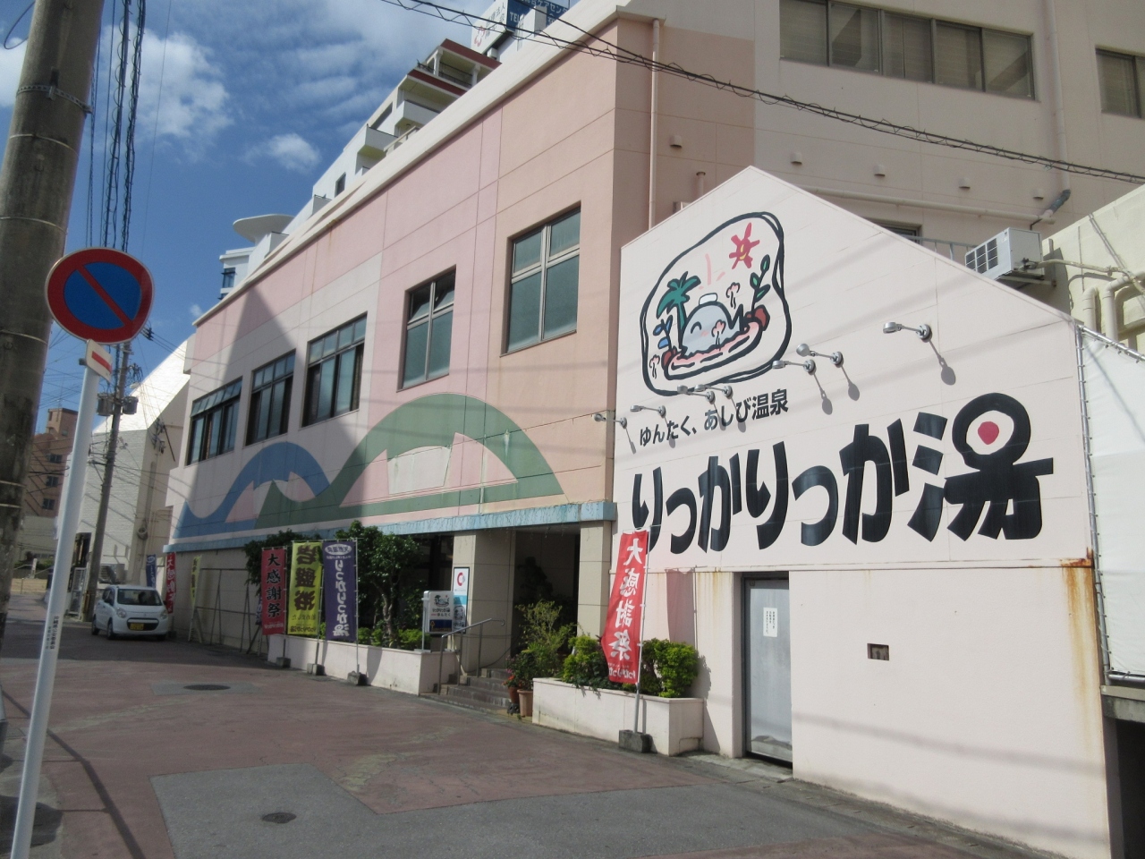 那覇新都心(ワースト1)のホテルから徒歩15分ほど、国際通りにも近い 牧志の住宅街にある こちらの「りっかりっか湯」