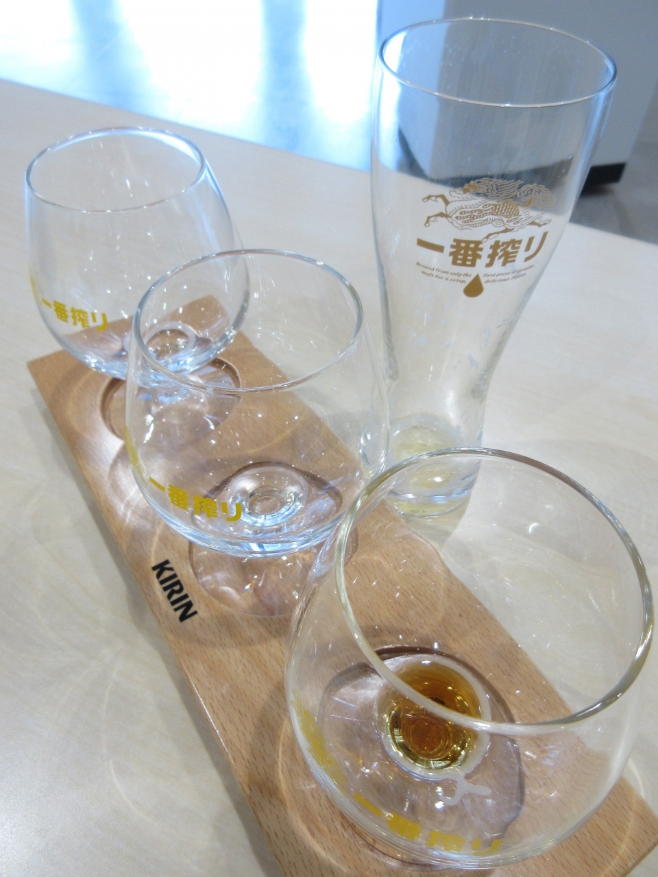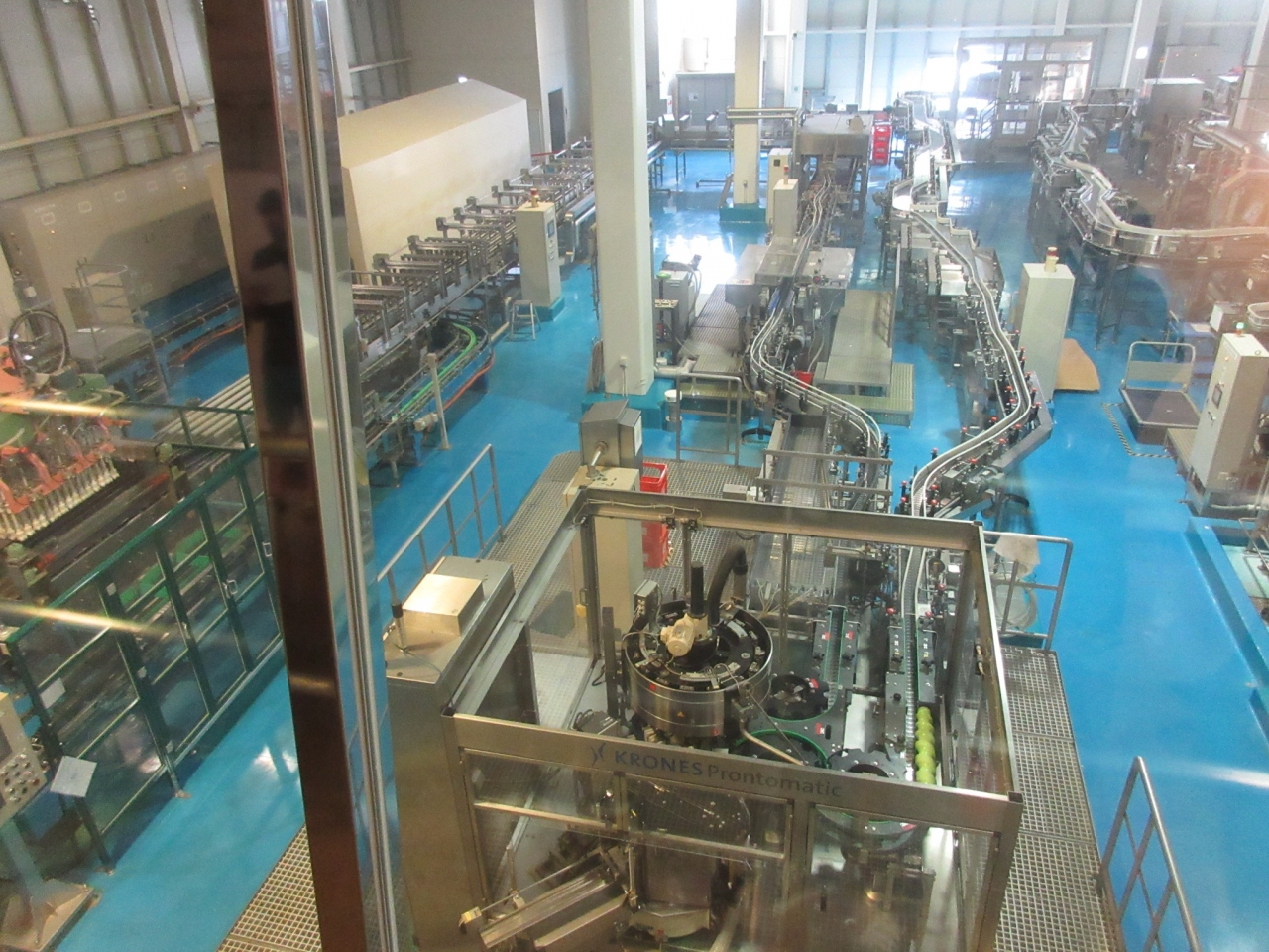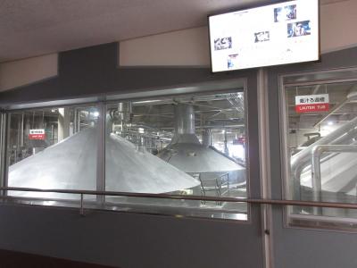 有料の工場見学ツアー500円に参加し、醸造・貯蔵・生産・ラベル印字・箱詰め など、各ラインを見学してきました。もちろん最後の「工場直送 出来立て 一番搾り」の味は格別です。