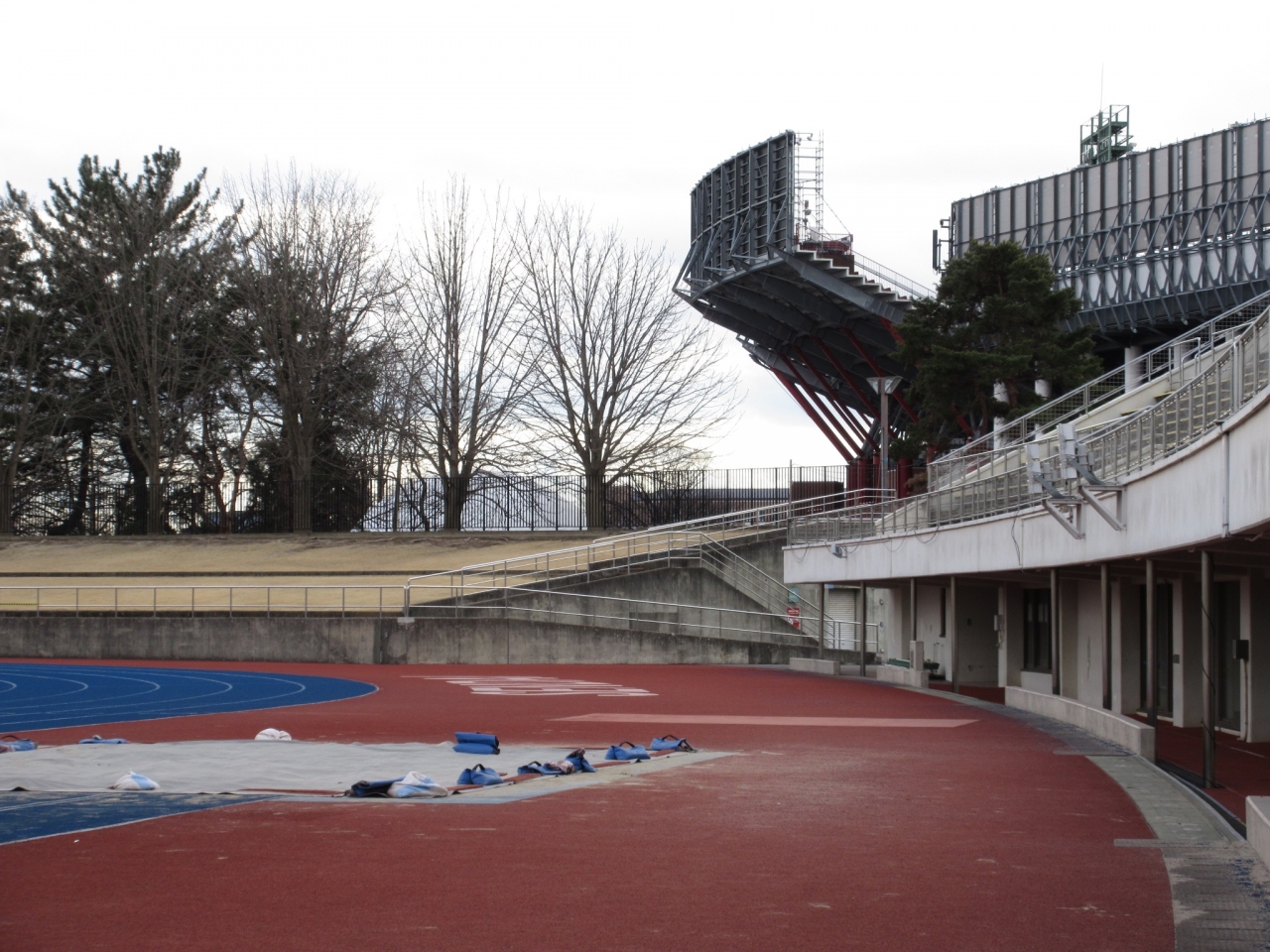屋外に広い陸上トラック、それを囲むように造られた 立派な観戦スタンド。