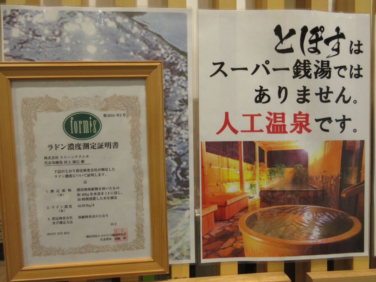 店の入り口に「人口温泉」と記載されているように、大浴場は「ラドン濃度」が含まれているとのことで、今回 私は仙台旅行の起点、そして「神経痛 持ち」なので「湯治」として利用しました。