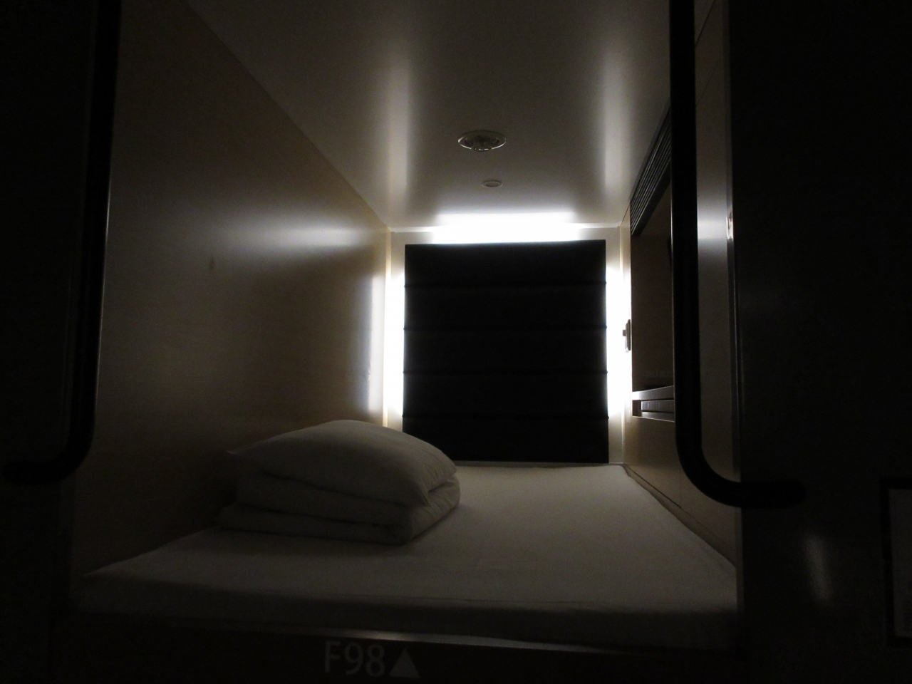 宿泊スペースですが、上下のカプセルルームが、斜め互い違いに配置されていて、ドタバタする音が軽減されていたように感じ、案外 しっかりと寝られました。