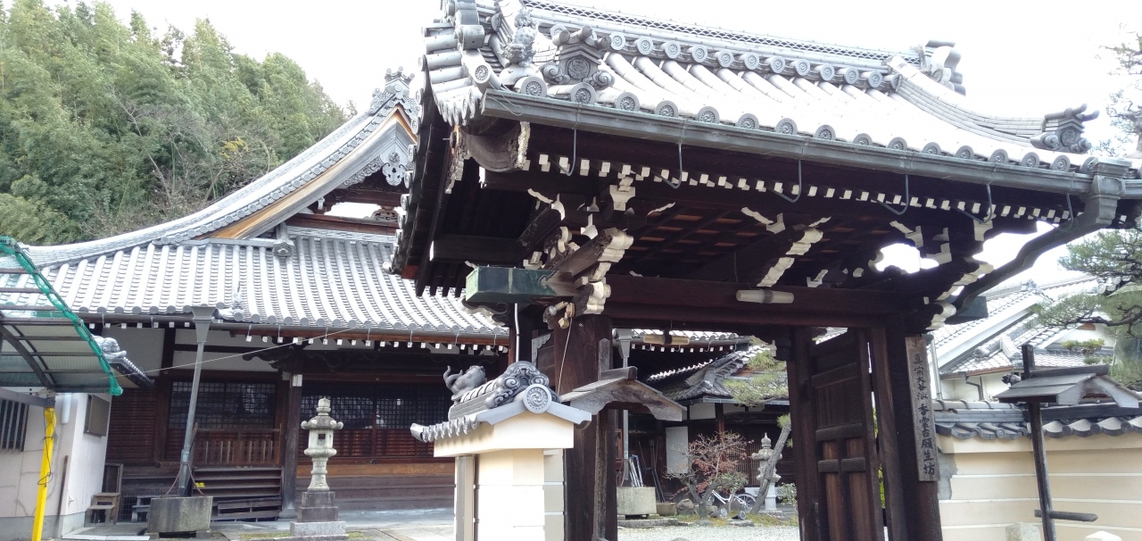 京阪電車・枚方駅を降り「京街道」を枚方公園駅方面へ向かうこと15分ほど、京阪の踏切を渡り「万年寺山」へ向かう道沿いにある真宗大谷派の寺院「願生坊」