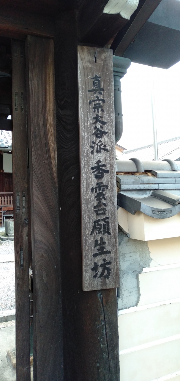 近くの京阪電車の踏切を渡ったところにある寺院「願生坊」とは、東本願寺、西本願寺の関係にあるそうです。