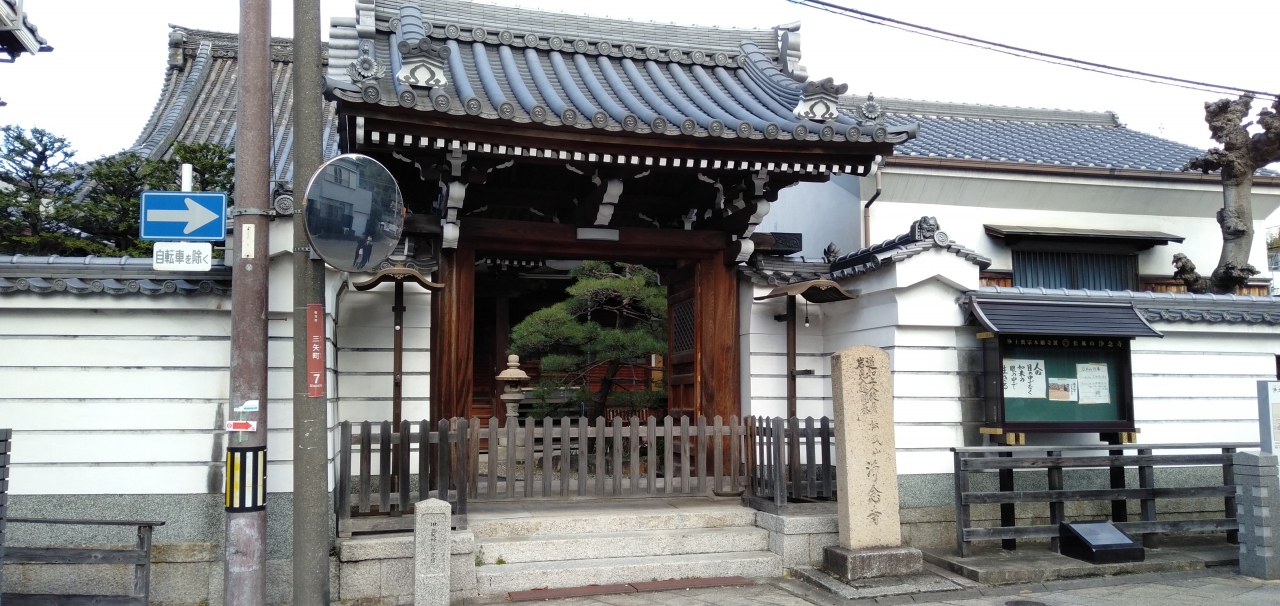 京阪電車・枚方駅を降り「京街道」を枚方公園駅方面へ向かうこと15分ほど。道がクランクになっている部分にあるお寺です。