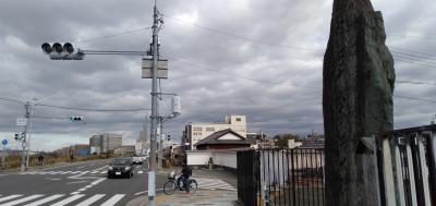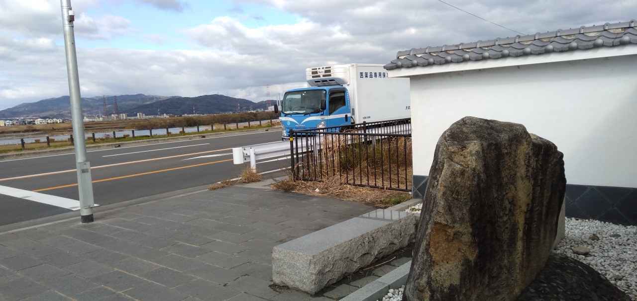 京阪電車・枚方駅を降り「京街道」を枚方公園駅方面へ向かうこと5~6分、小さな広場の前に 石碑と案内板が設置されていました。