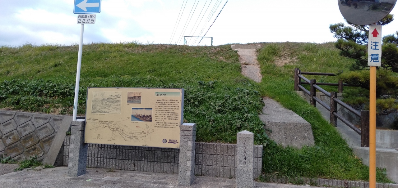 京阪電車・枚方駅から北側・京都方面に3~4分ほど歩いたところに、この「東見附」の看板がありました。