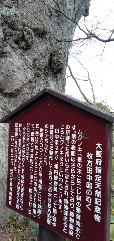 京阪電車・枚方駅を降り「京街道」を枚方公園駅方面へ向かい、さらに「万年寺山」を上った奥の住宅街に残る「田中邸の椋の木」