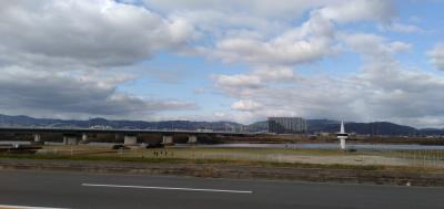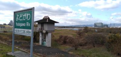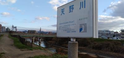 京阪電車・枚方駅を降りて、京都方面(北側)へ4~5分歩くと、「淀川」の支流となる「天野川(あまのがわ)」の河川敷に出ます。