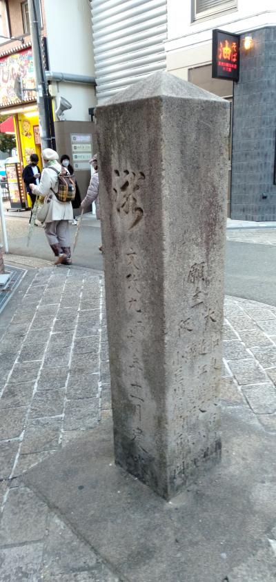 京阪電車・枚方駅を降りてすぐ、いまは駅前の小さな商店街になっていますが、かつて「京街道・枚方宿」として栄えた道端に石碑が立っています。いわゆる「道しるべ」ですね。