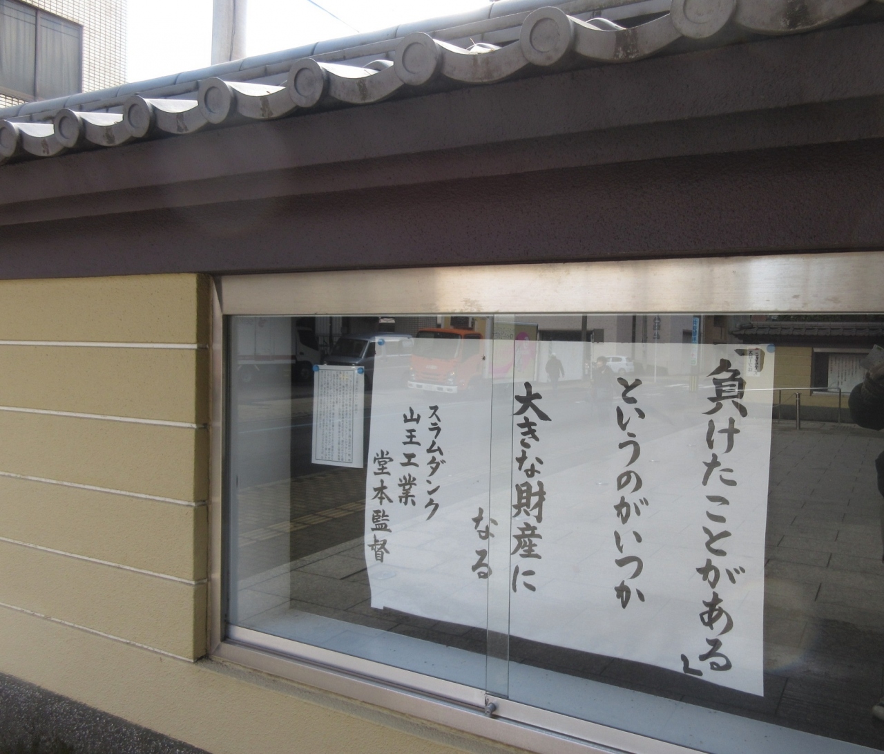 お寺の入口付近に、住職が書いた「書」を掲示している寺院を多く見かけますが、こちらの寺では、人気漫画「スラムダンク」のセリフを掲示。
