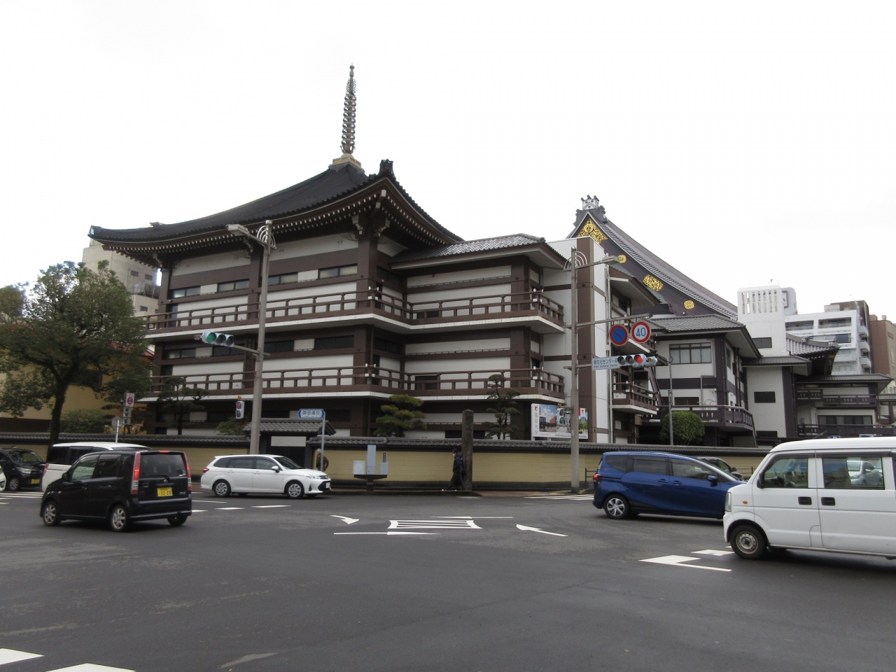 鹿児島・中央公園や天文館にも近い大きな寺院。周辺には見当たらないほど大きな本堂が目を引きました。