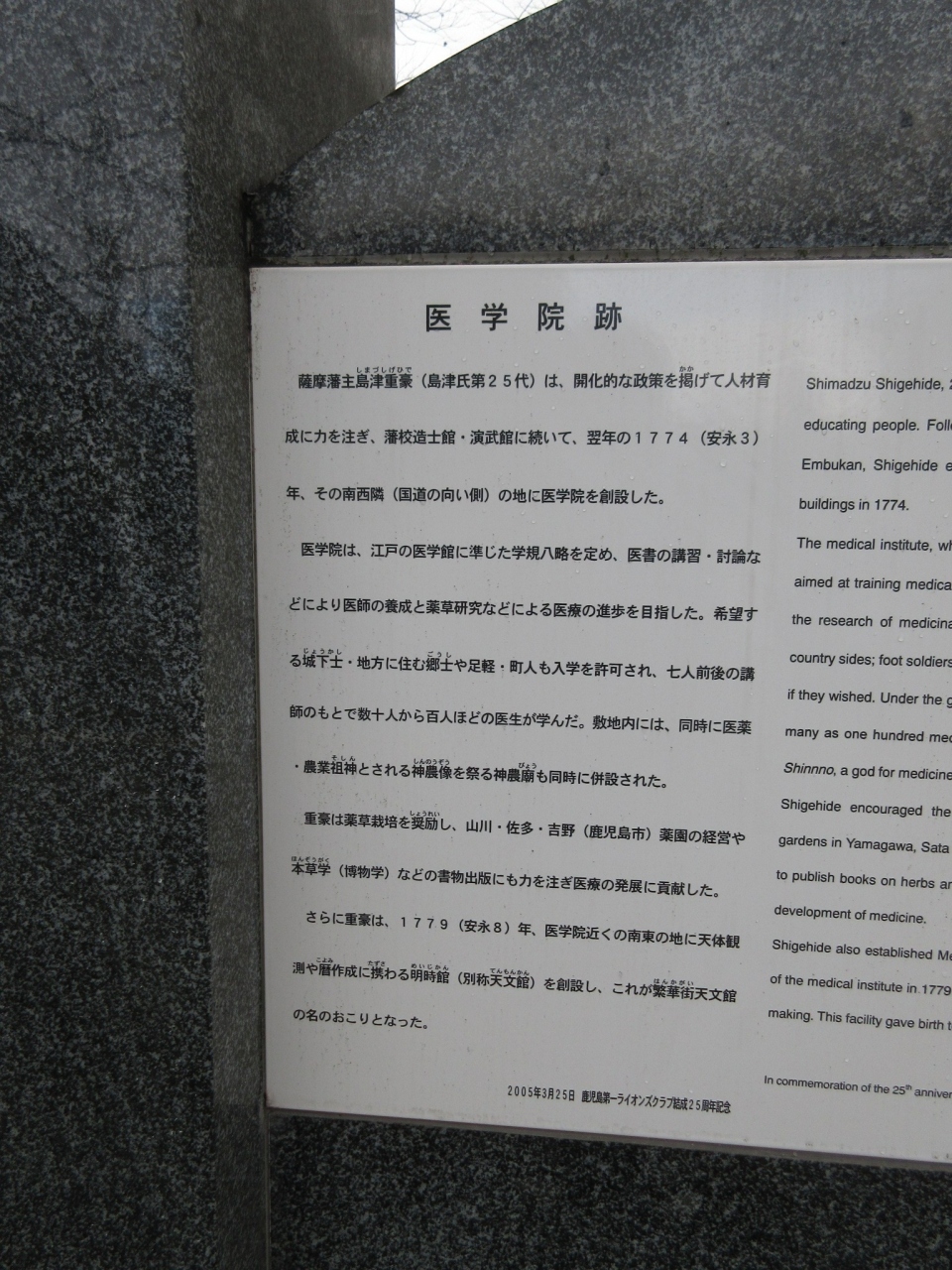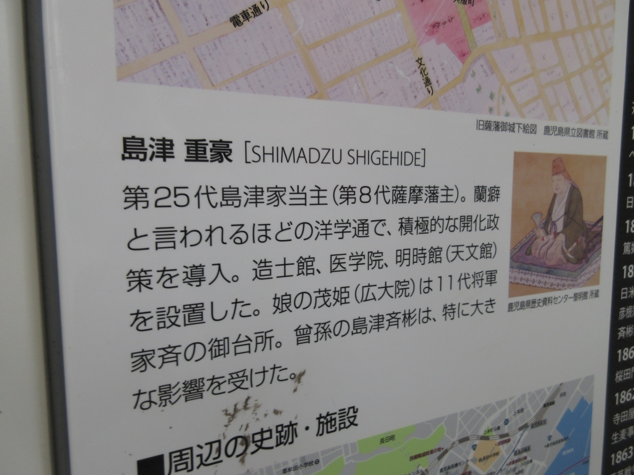 近くの「中央公園」に記念碑がある「造士館」「医学館」とともに、この「天文館」も設置した 島津家 第25代当主・島津重豪の功績が紹介されていました。