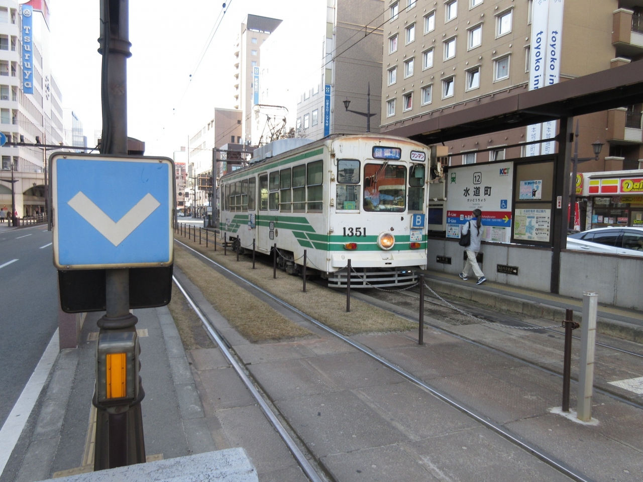 JR熊本駅から路面電車で15分ほどの「水道町電停」の目の前にして、有名観光スポット「くまモン スクエア」の目の前という好立地。