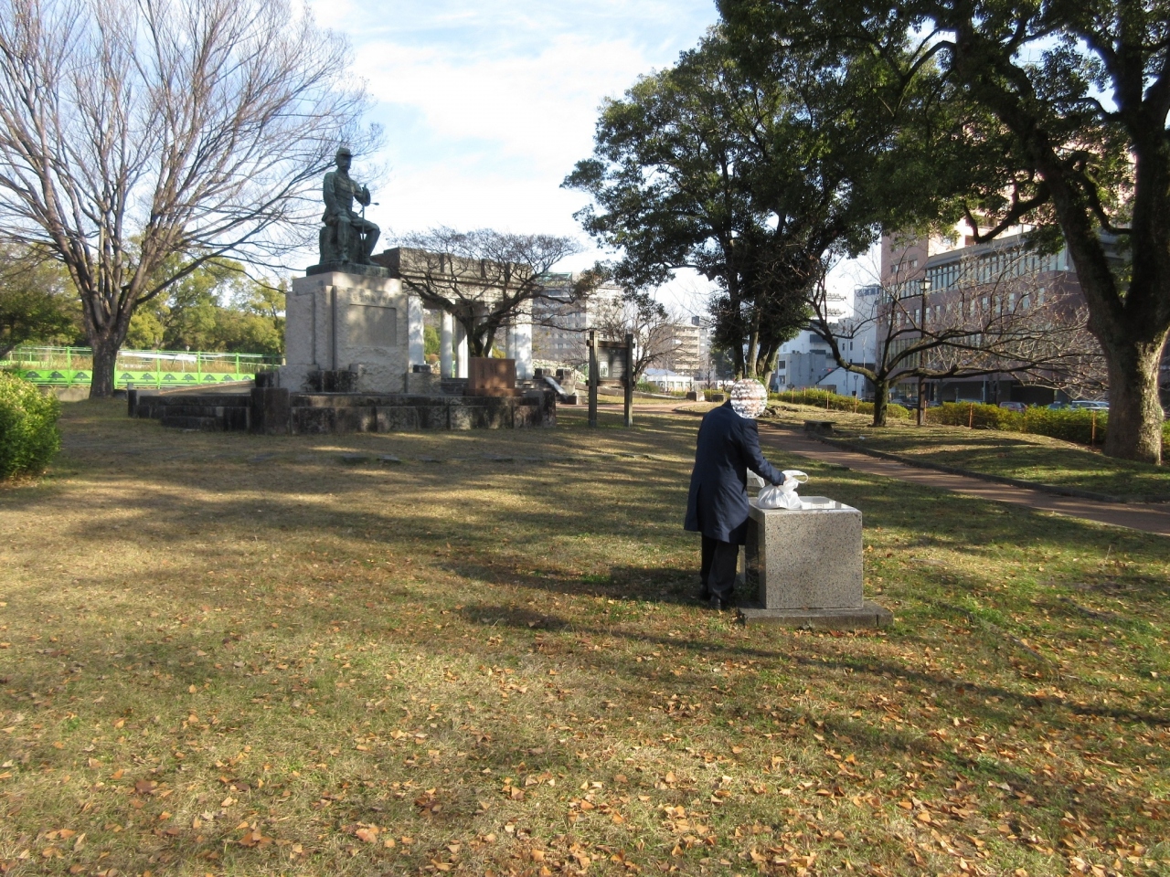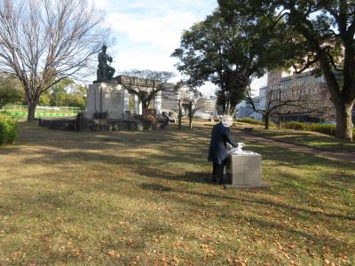 熊本城下にある「熊本城稲荷神社」の通りを挟んだ目の前、高橋公園の中に設置された記念の銅像。