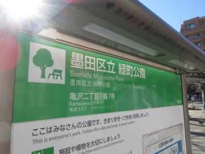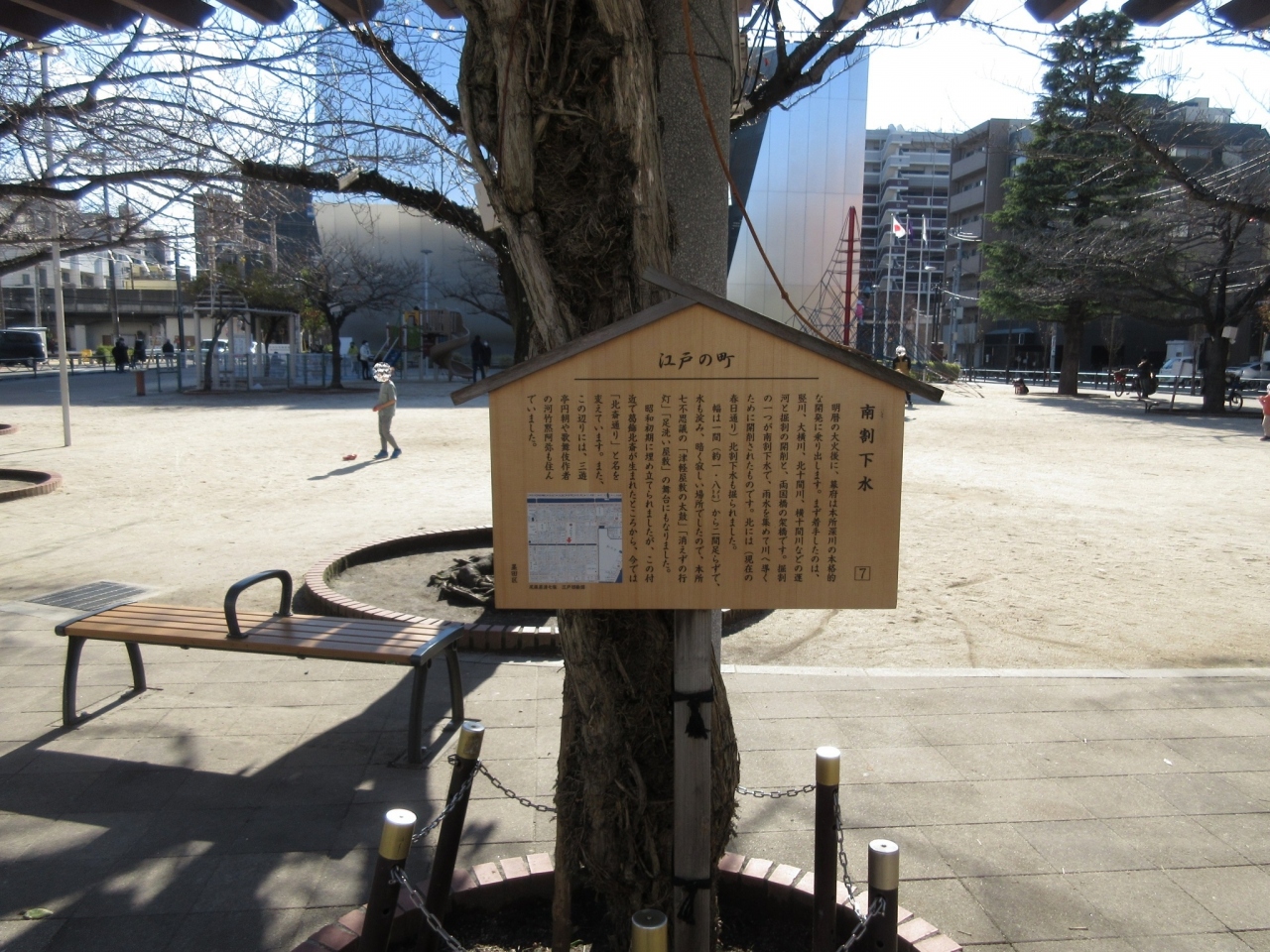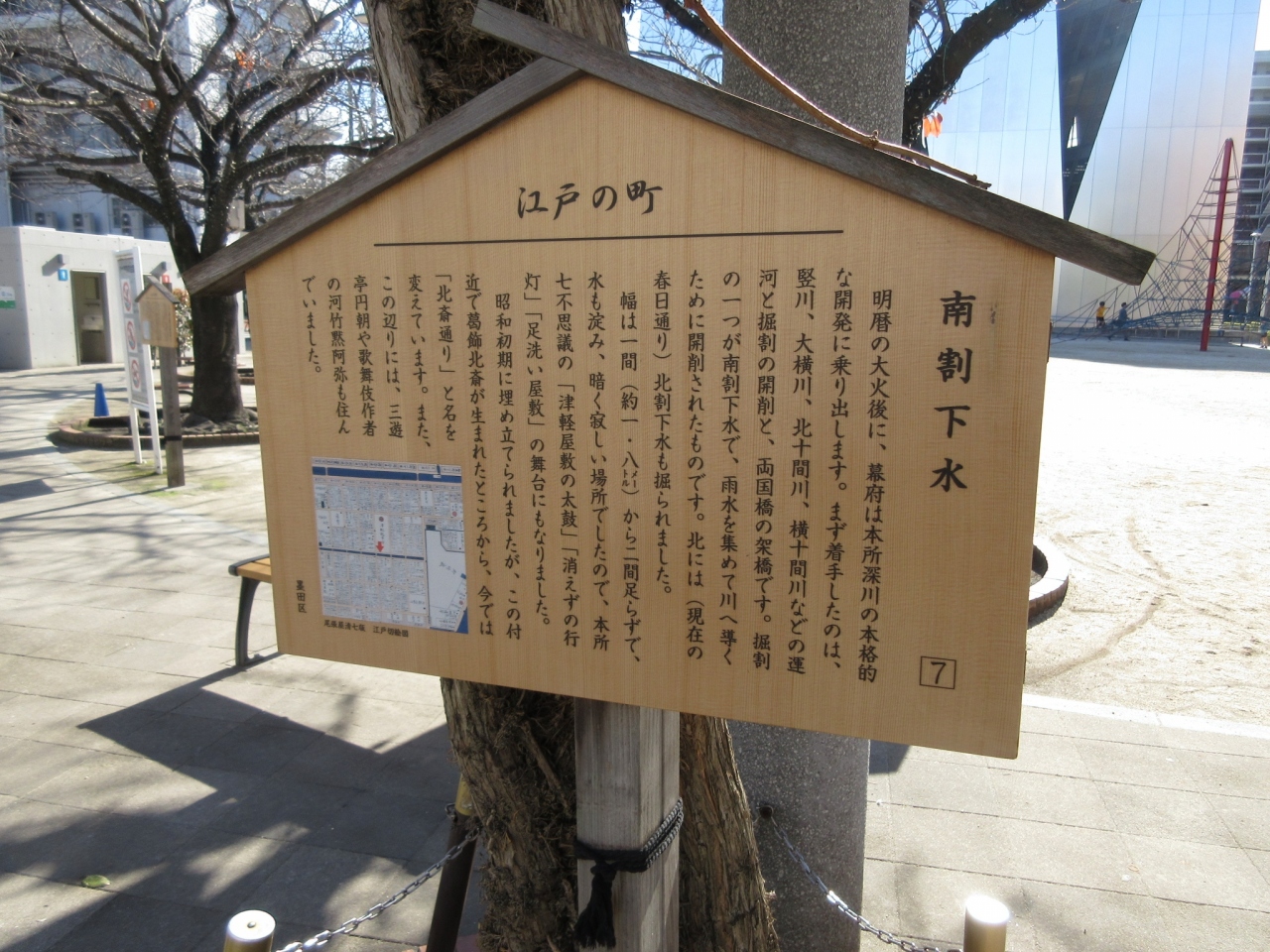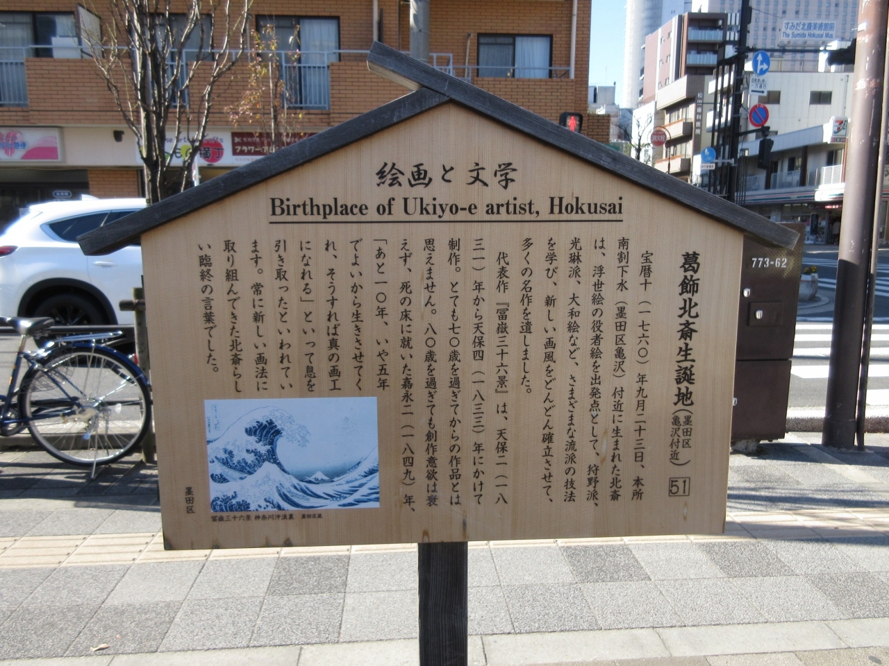 JR両国駅から徒歩5分ほど、葛飾北斎・生誕の地である「緑町公園」の中に 立て看板がありました。