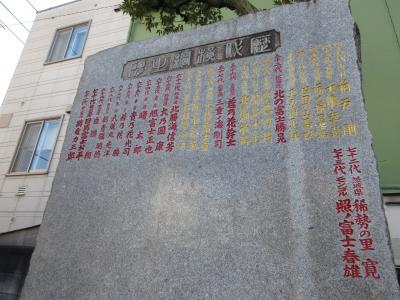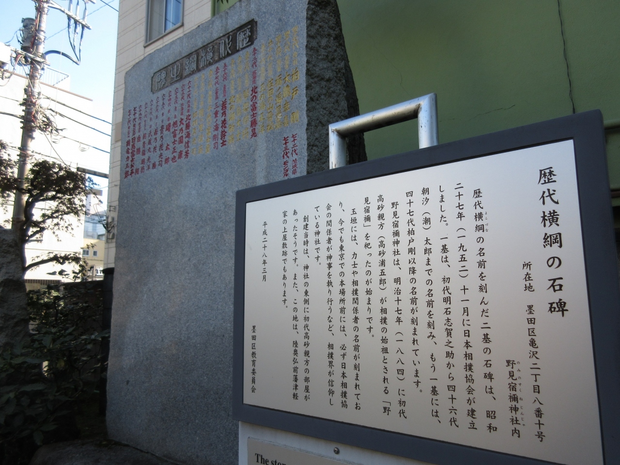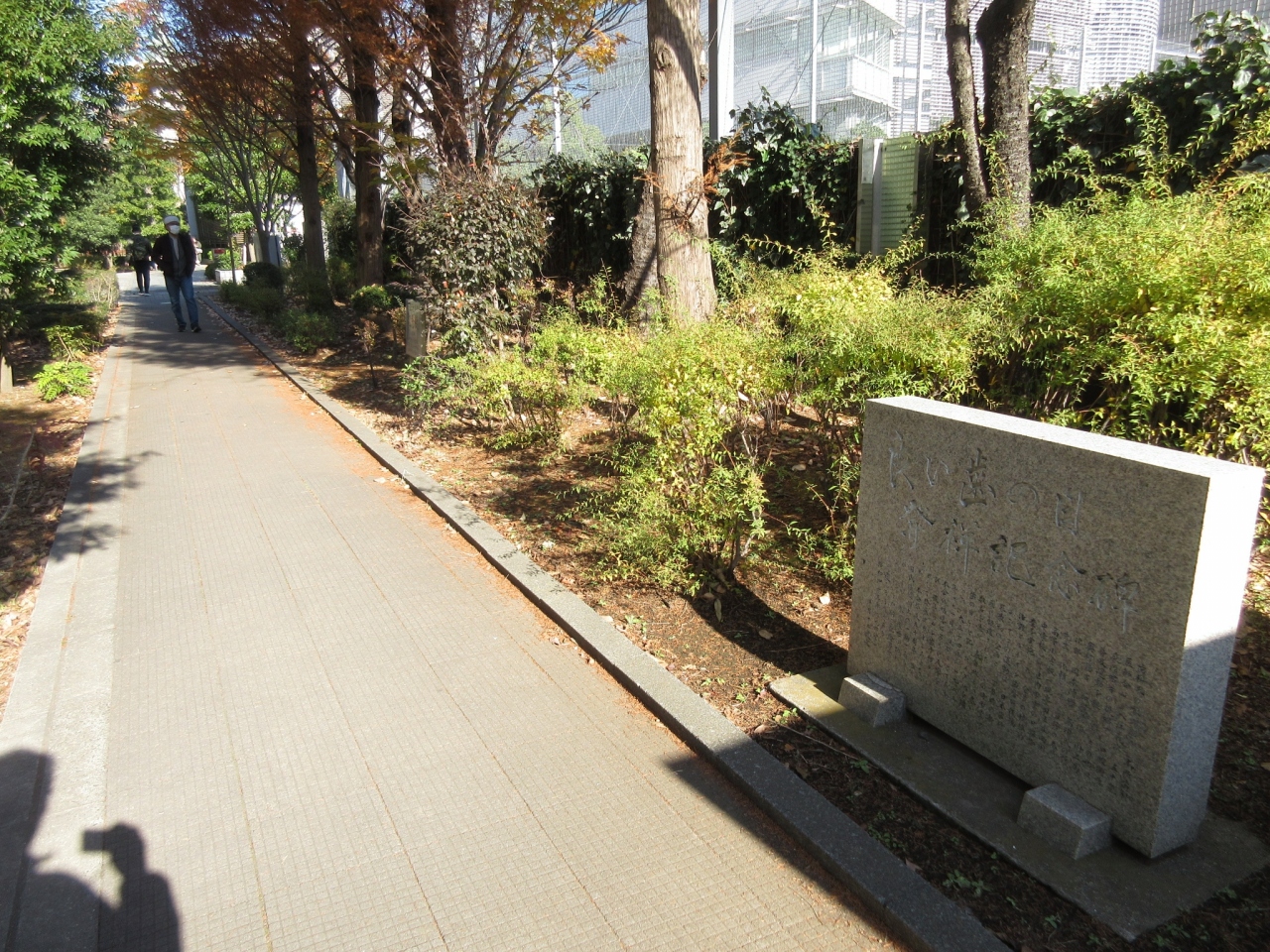 「両国国技館」と「江戸東京博物館」の裏手、墨田区立・両国中学校の正門脇に 石碑が立てられています。
